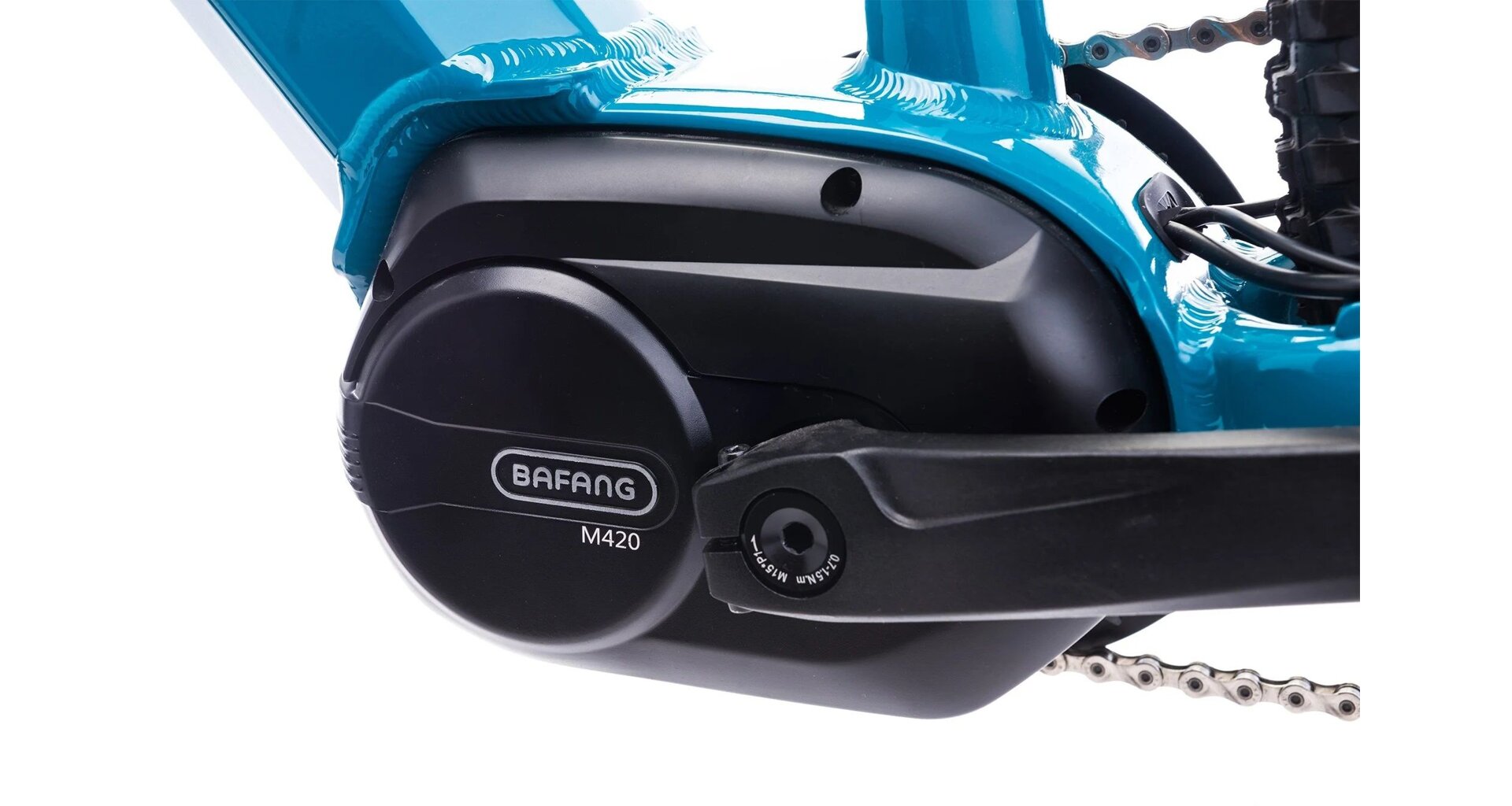 PULZE – pánsky horský e-bike s elektromotorom Bafang M420. Tento elektromotor je navrhnutý pro optimální přenos sil při šlapaní. Poskytuje výkon 250W a točivý moment až 80Nm. Dostatočnou zásobu energie na dlouhé výlety zabezpečí batérie Samsung, která má kapacitu 630Wh a je plně integrovaná v rámě kola.